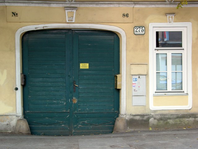 Das Haustor in der Hütteldorfer Straße 275 trägt die Inschrift "1867" über der Einfahrt