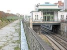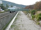 Hochquellenwasserleitung über den Wienfluss. Der Stiegenaufgang wurde mit