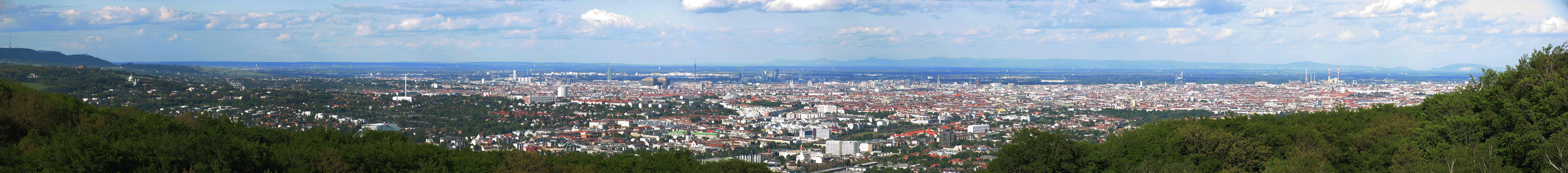 Ein Panoramablick vom "Wiener Blick" im Lainzer Tiergarten Richtung Penzing am 16.5.2004