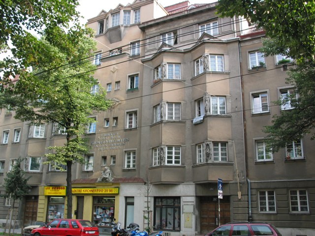 Hütteldorfer Straße 267. Auf den meisten dieser Bauten finden sich monumentale
