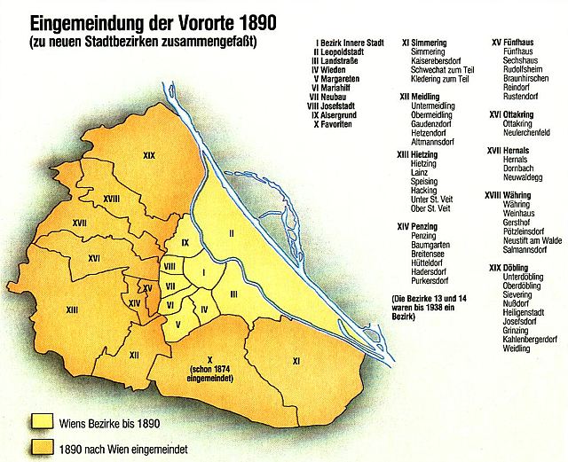 Ende 1890 wurde die Erweiterung Wiens auf nahezu die heutige Größe