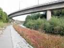Mit elegantem Schwung wechselt die Hadikgasse vor den Rückhaltebecken das Wienflussufer